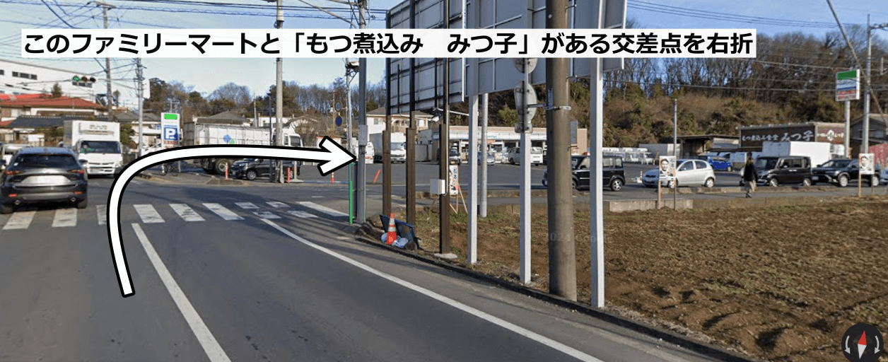 ファミリーマートと「もつ煮込みみつ子」の交差点を解説した画像
