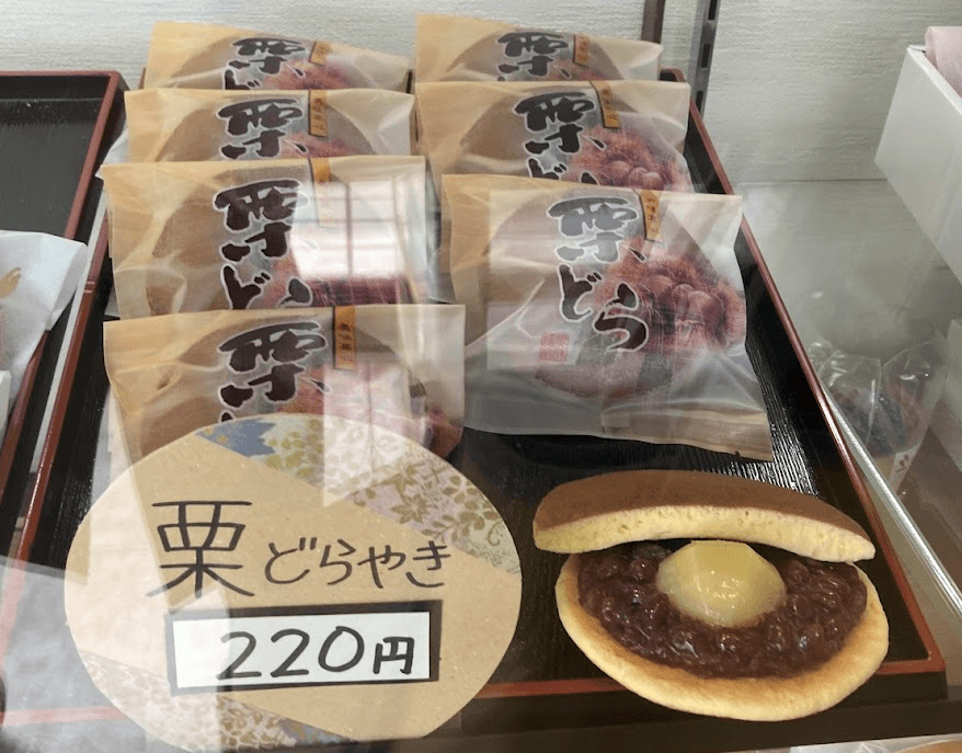 常温のどら焼きは2種類で、「栗どら(税込価格220円)」もあります。