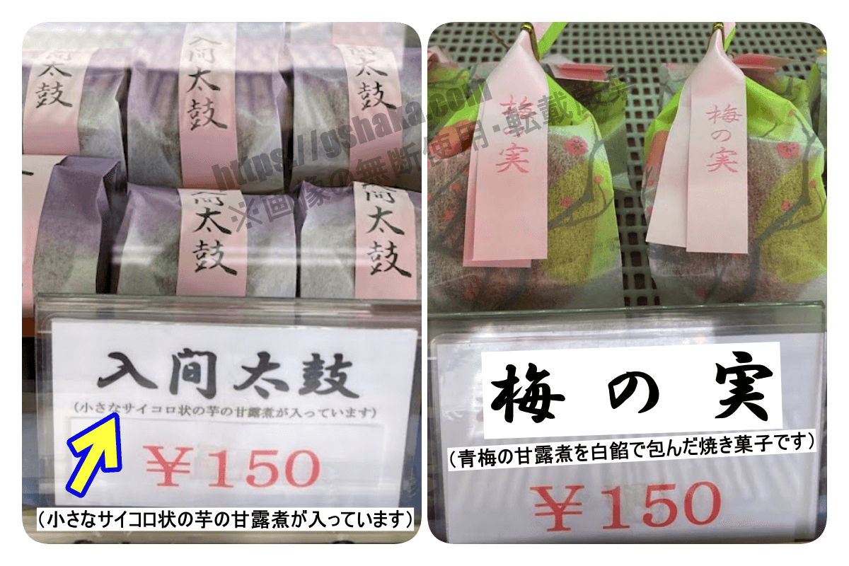 - 入間太鼓→小さなサイコロ状の芋の甘露煮が入っています