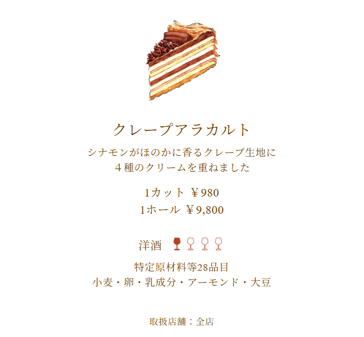| クレープアラカルトのクリーム | ハーブスの他のケーキでの例 |